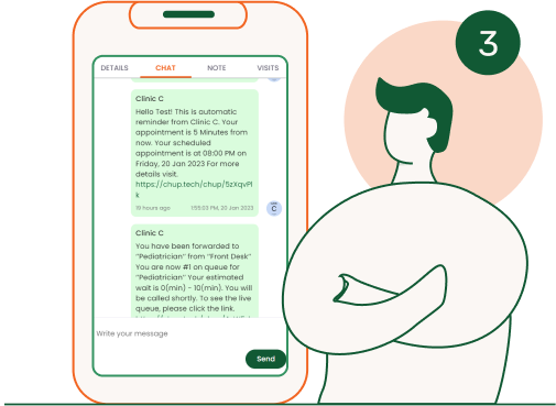 Customers will get live updates and automatic frequent reminders according to live situation of the clinic.